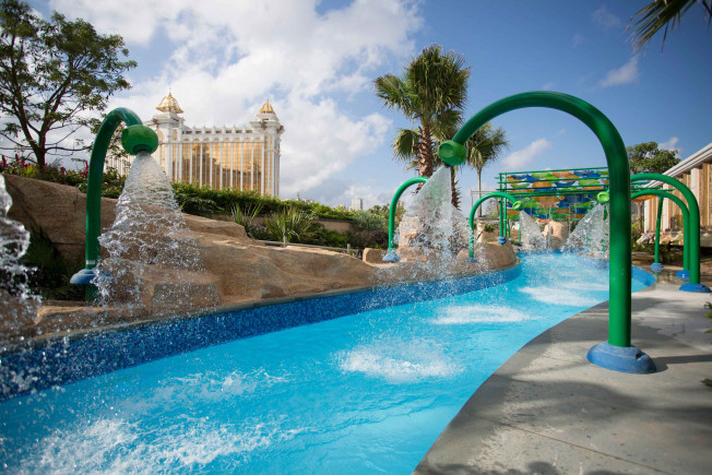 朗朗愛刺激玩意,到銀河酒店的天浪淘園可以瘋狂暢玩一天!這裡有多個世界級No. 1設施,包括全球最長的575米空中激流和全球最大的空中衝浪池,還有150米的白沙灘、瀑布、滑水天梯、兒童水上遊戲專區等。最特別是,激流的滑水道以透明設計,漂流時可以同時見到外面的景觀;而空中衝浪池每日均有人造浪環節,最高可翻起1.5米高的人造海浪,現場興奮指數肯定即時急升。天浪淘園附設小食亭和池畔餐廳,大人玩得疲倦,也可以歎杯飲品、吃小食,徐榮已決定下次要三代同堂再來激玩各種水上玩意!