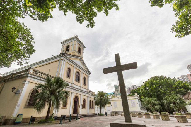 位於氹仔舊城區的嘉模聖母堂建於1885年,亦是氹仔唯一的天主教堂,1992年被列入澳門文物名錄。樓高3層的聖母堂,設計採用了巴洛克風格,淡黃色的外牆由磚木建成,配襯著圓拱形窗戶,流露西歐古樸優雅的氣息。值得欣賞的是鐘樓設置於教堂的尖頂上,在古典的教堂建築中比較少見。教堂的外形、用色,予人浪漫感覺,加上對面便是澳門婚姻註冊署,所以特別多人在此拍照或影婚照。徐榮一家三代同堂來到這個歐陸風教堂,當然也要把握機會來張開心大合照。